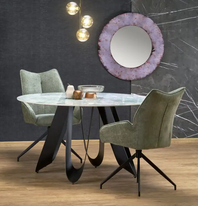 GIOVANI asztal, kerek, szín: zöld márvány/fekete