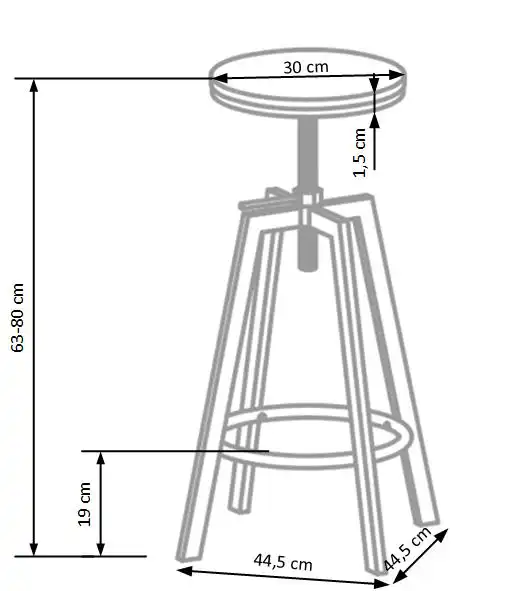 méretek: fi30/63-80 cm, anyag: festett acél / laminált MDF, szín: kávé / antik kivitel