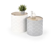 méretek: 80/50 cm, 60/45 cm és 45/40 cm, 3 darabos szett, anyag: szinterezett kő / porfestett acél, szín: fehér márvány / arany