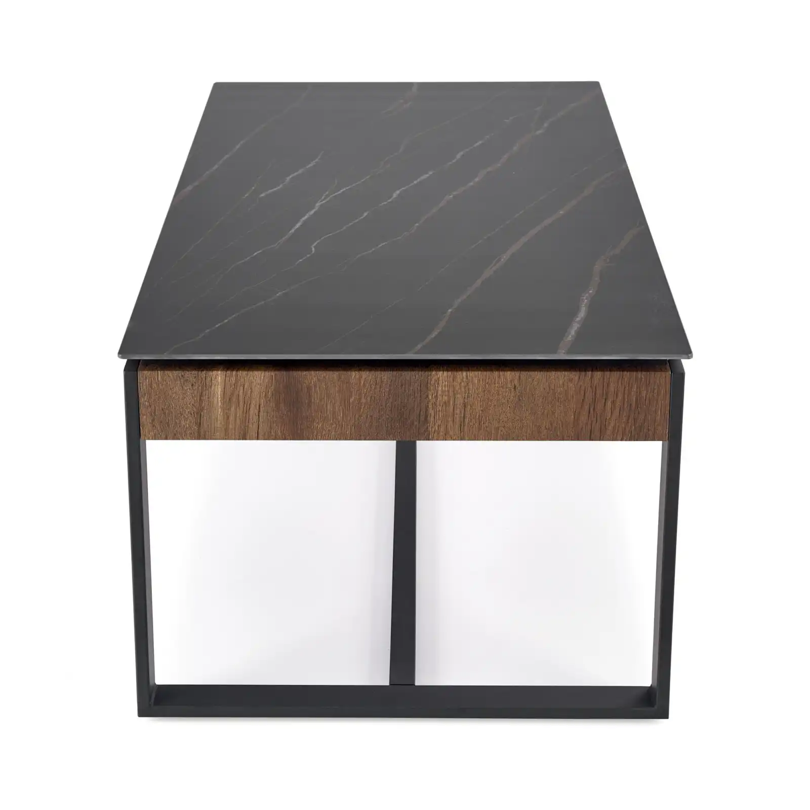 méretek: 121/61/45 cm, anyag: szinterezett kő / laminált MDF / porfestett acél, szín: fekete márvány / dió