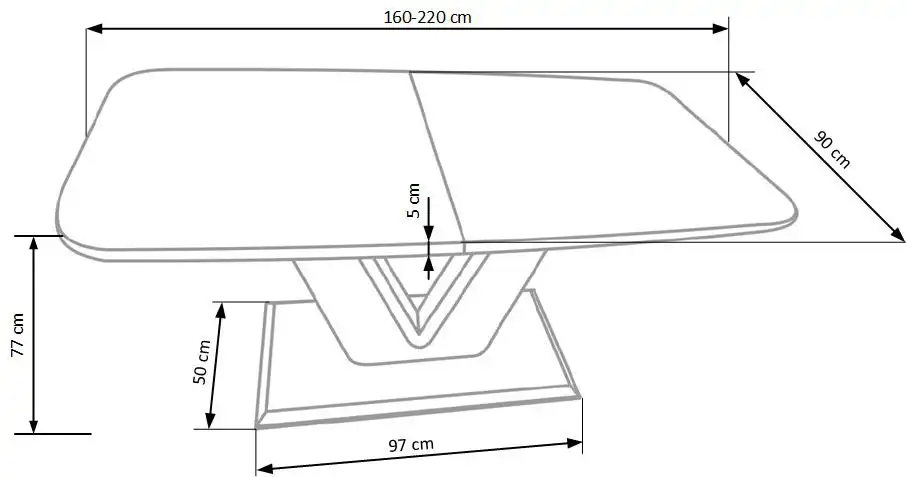 kihúzható asztal, méretek: 160-220/90/77 cm, anyag: lakkozott MDF / rozsdamentes acél, szín: fehér