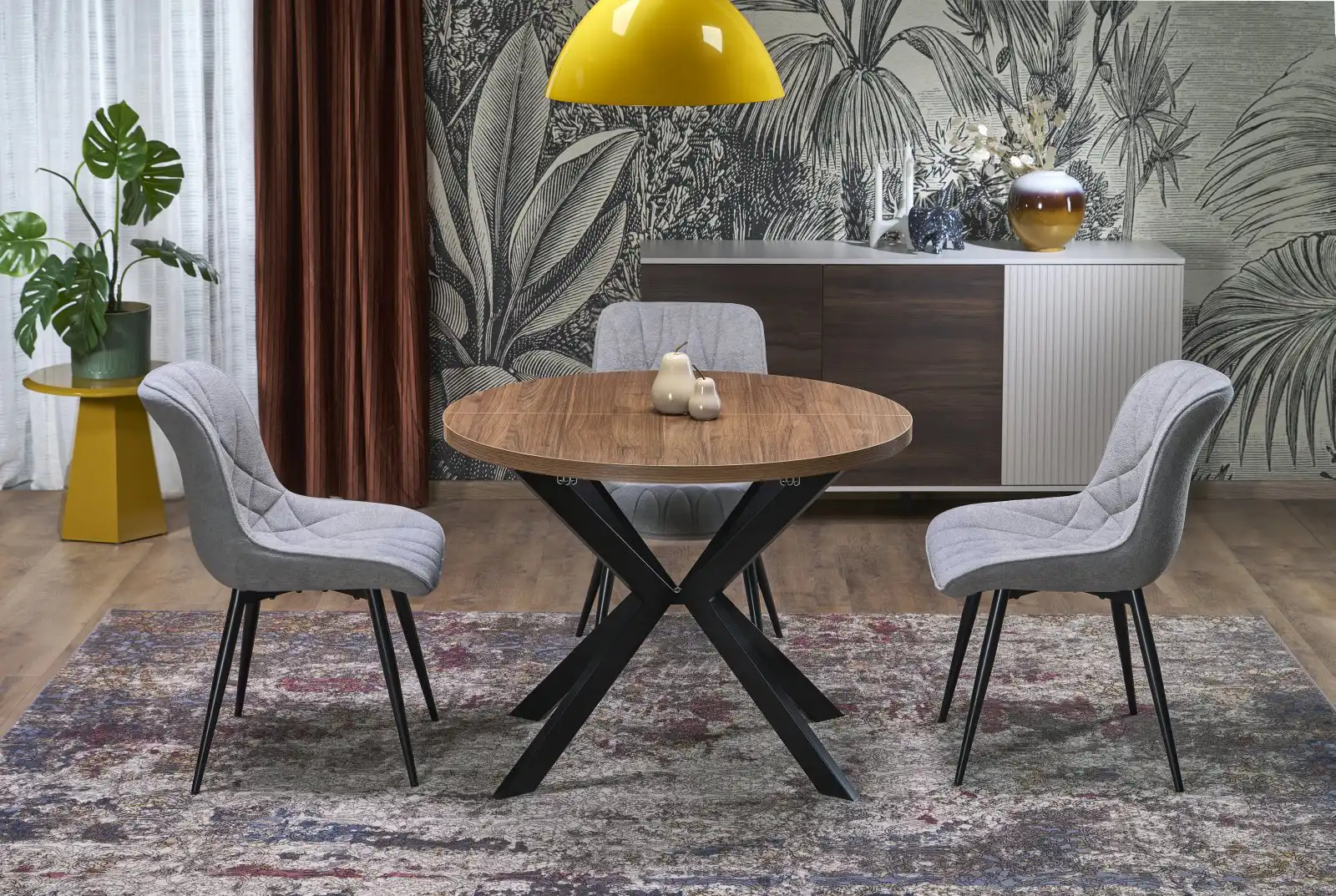 méretek: fi100-250/100/75 cm, kihúzható asztal, anyag: laminált forgácslap / porfestett acél, szín: dió / fekete