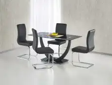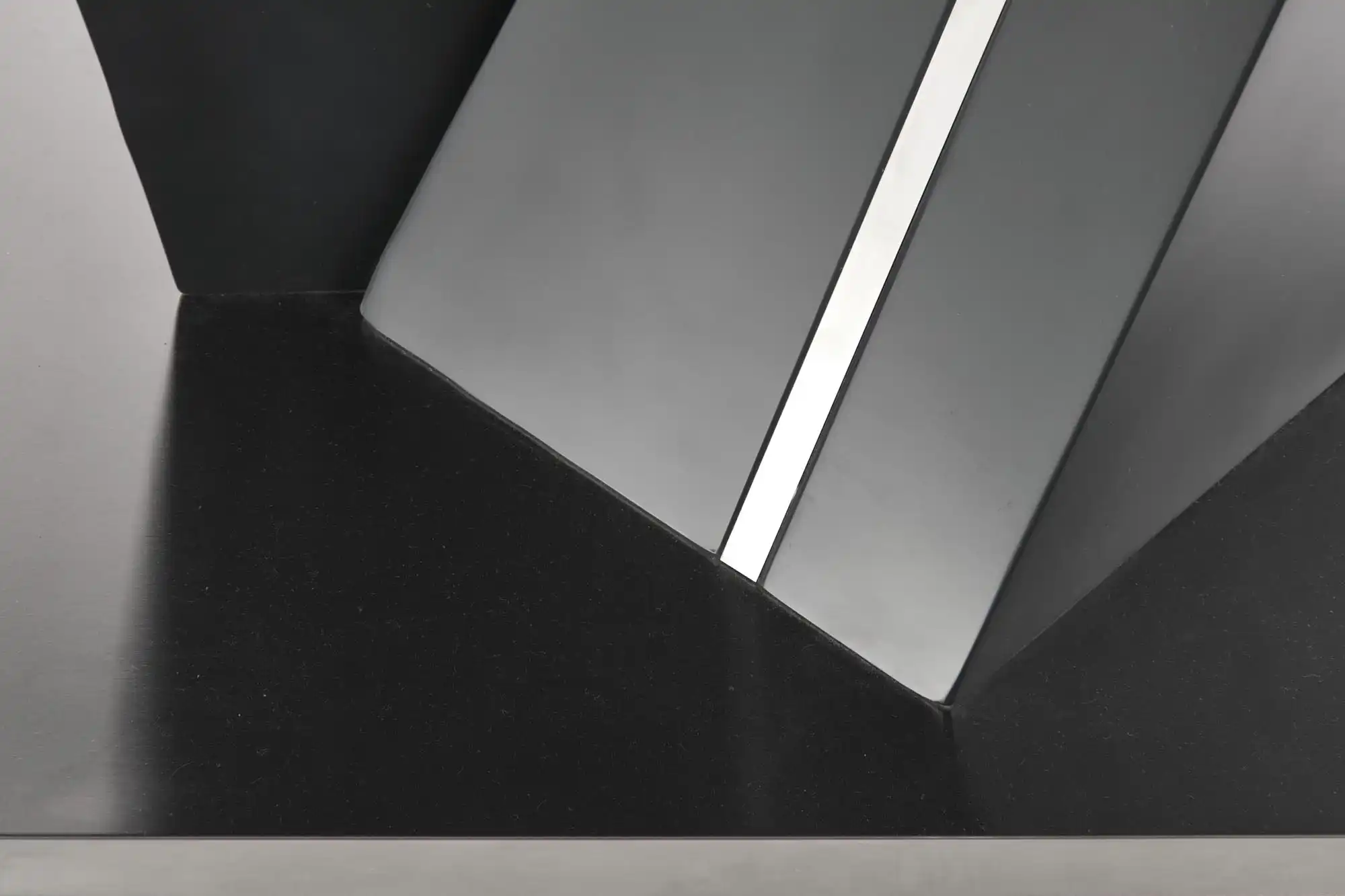méretek: 160-200/90/77 cm, anyag: üveg / lakkozott MDF / rozsdamentes acél, szín: tető – sötétszürke, lábak – sötétszürke
