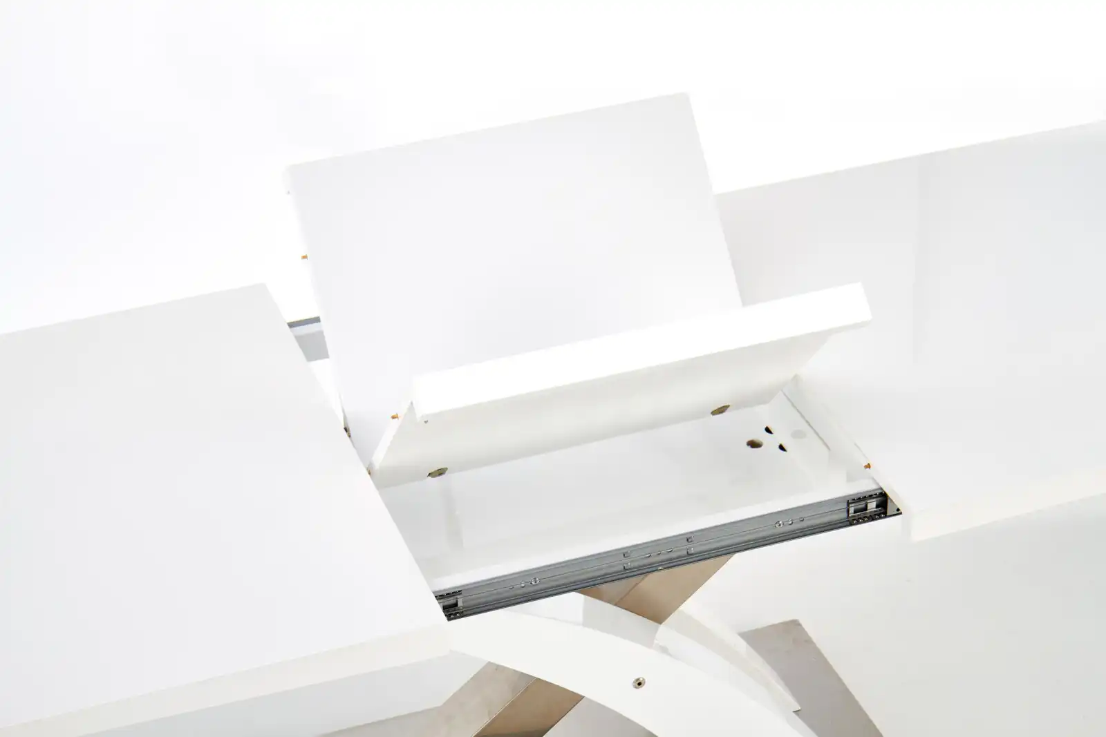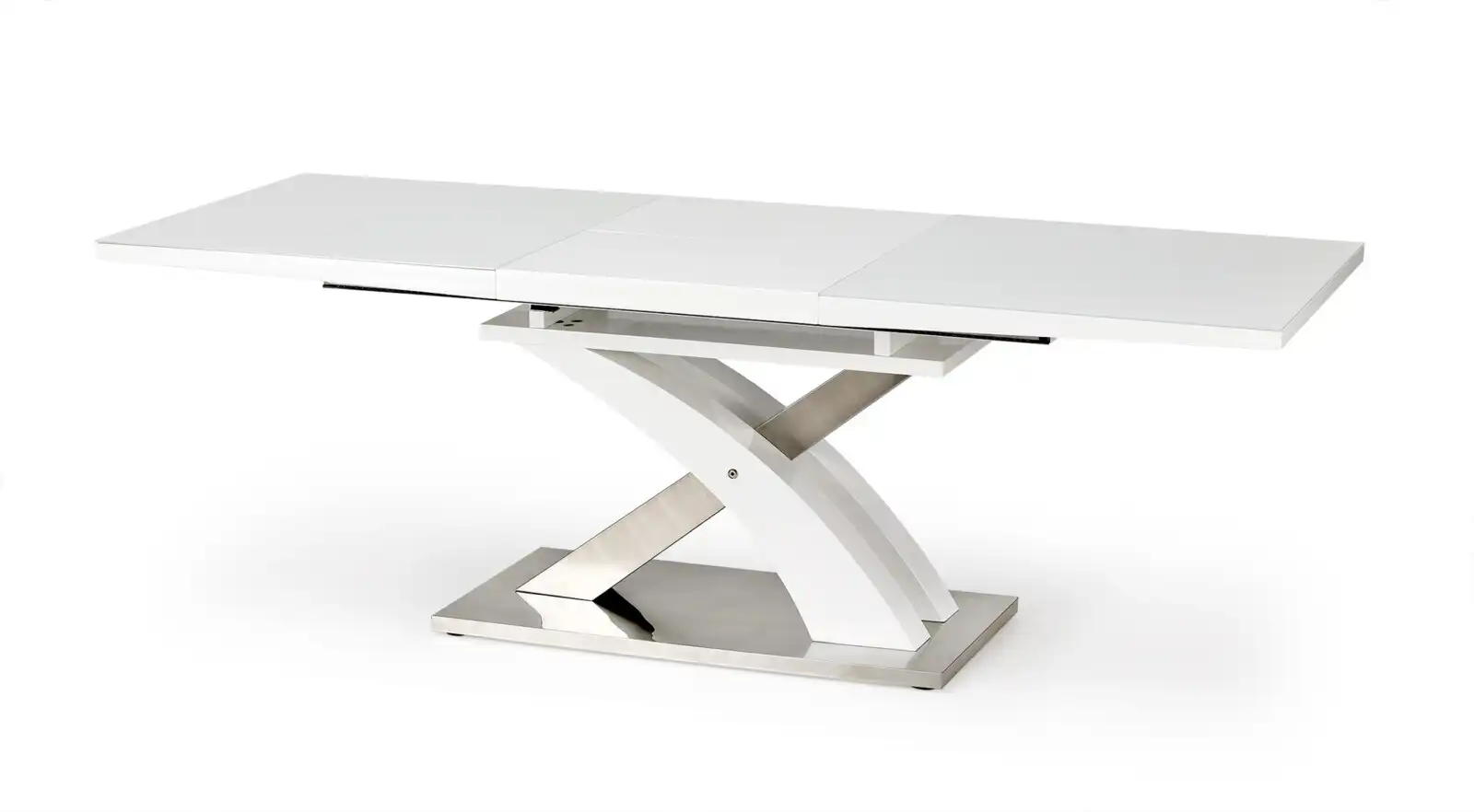 kihúzható asztal, méretek: 160÷220/90/78 cm, anyag: üveg / lakkozott MDF / rozsdamentes acél, szín: üveg – extra fehér, MDF – fehér