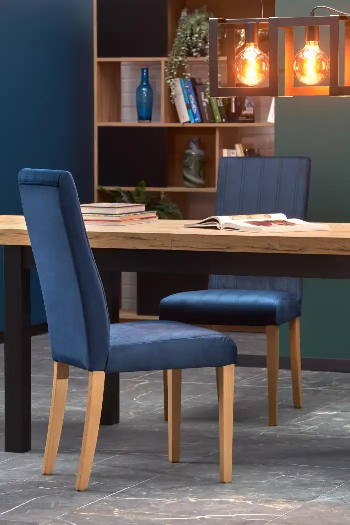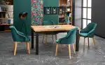 kihúzható asztal, méretek: 140-220/80/76 cm, anyag: tető – laminált faforgácslap, lábak – tömör bükkfa, szín: tető – craft tölgy, lábak – fekete