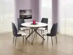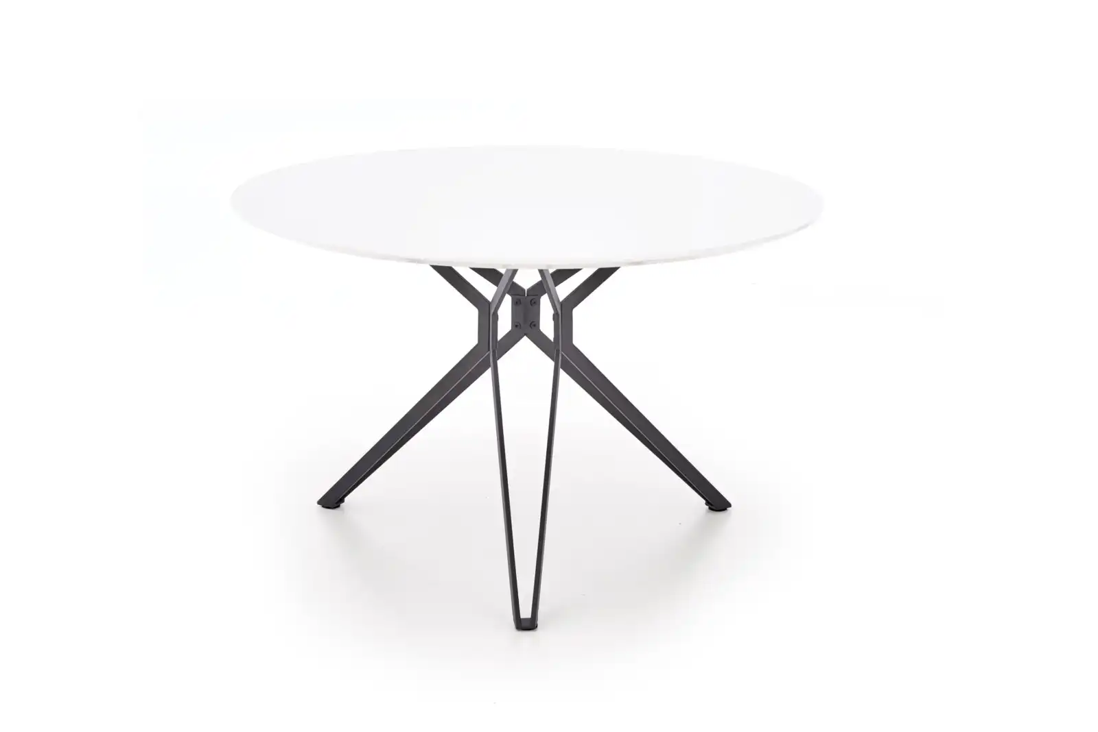méretek: fi120/76 cm, anyag: lakkozott MDF / porfestett acél, szín: asztallap – fehér, váz – fekete