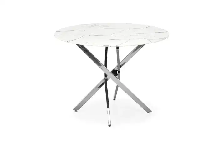 méretek: fi100/73 cm, anyag: üveg / króm acél, szín: tető – fehér márvány, lábak – ezüst