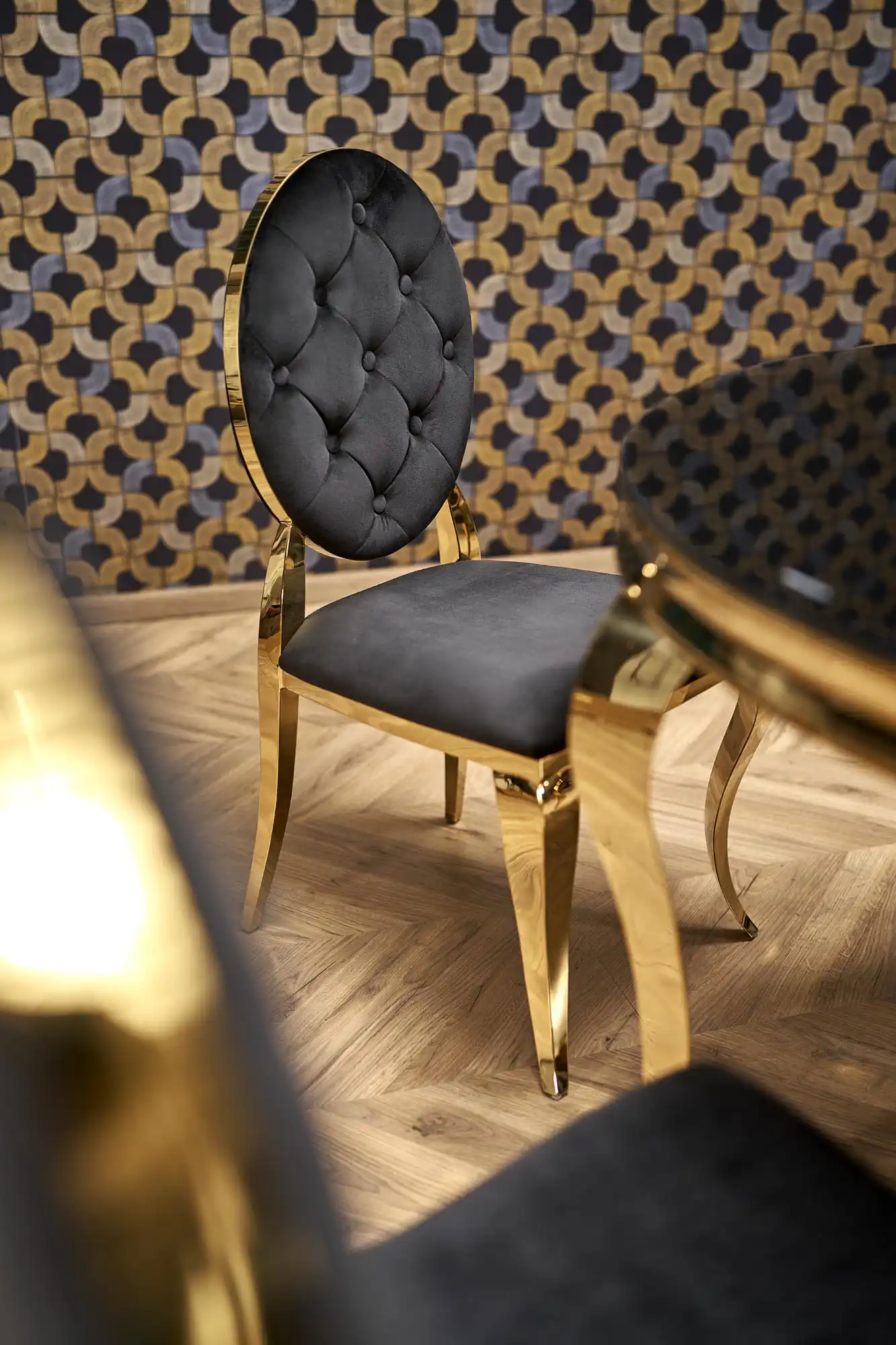 REGINALD 2 asztal, kerek, szín: fekete üveg/arany
