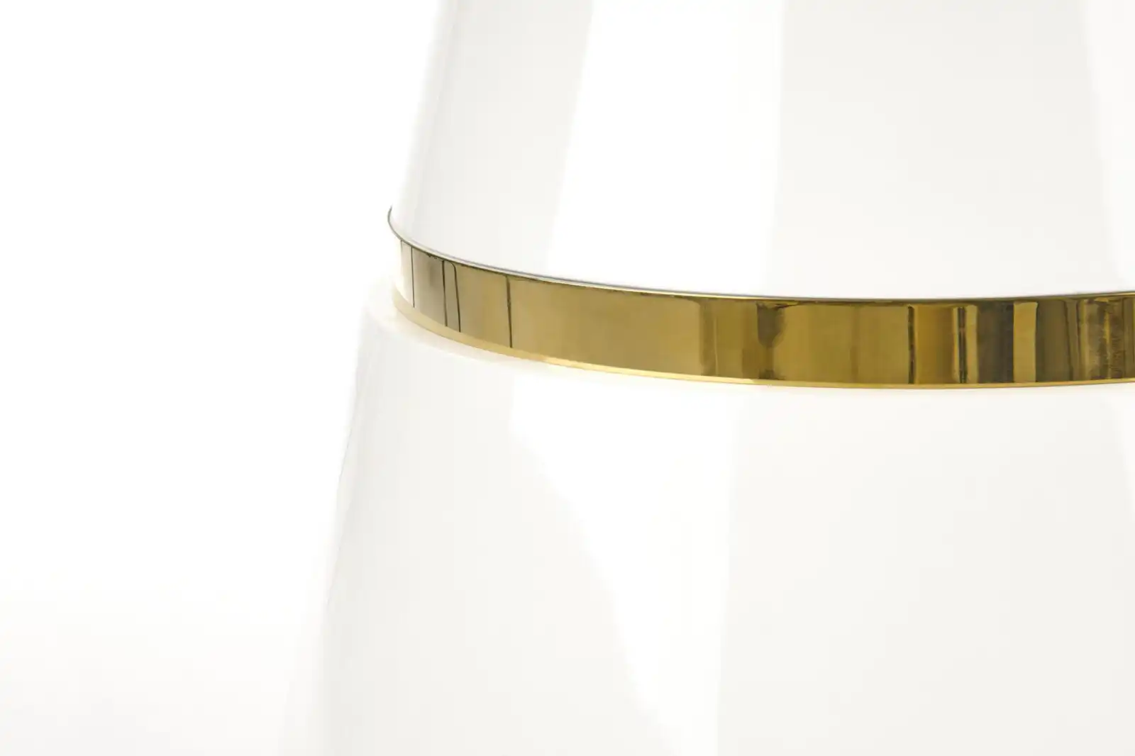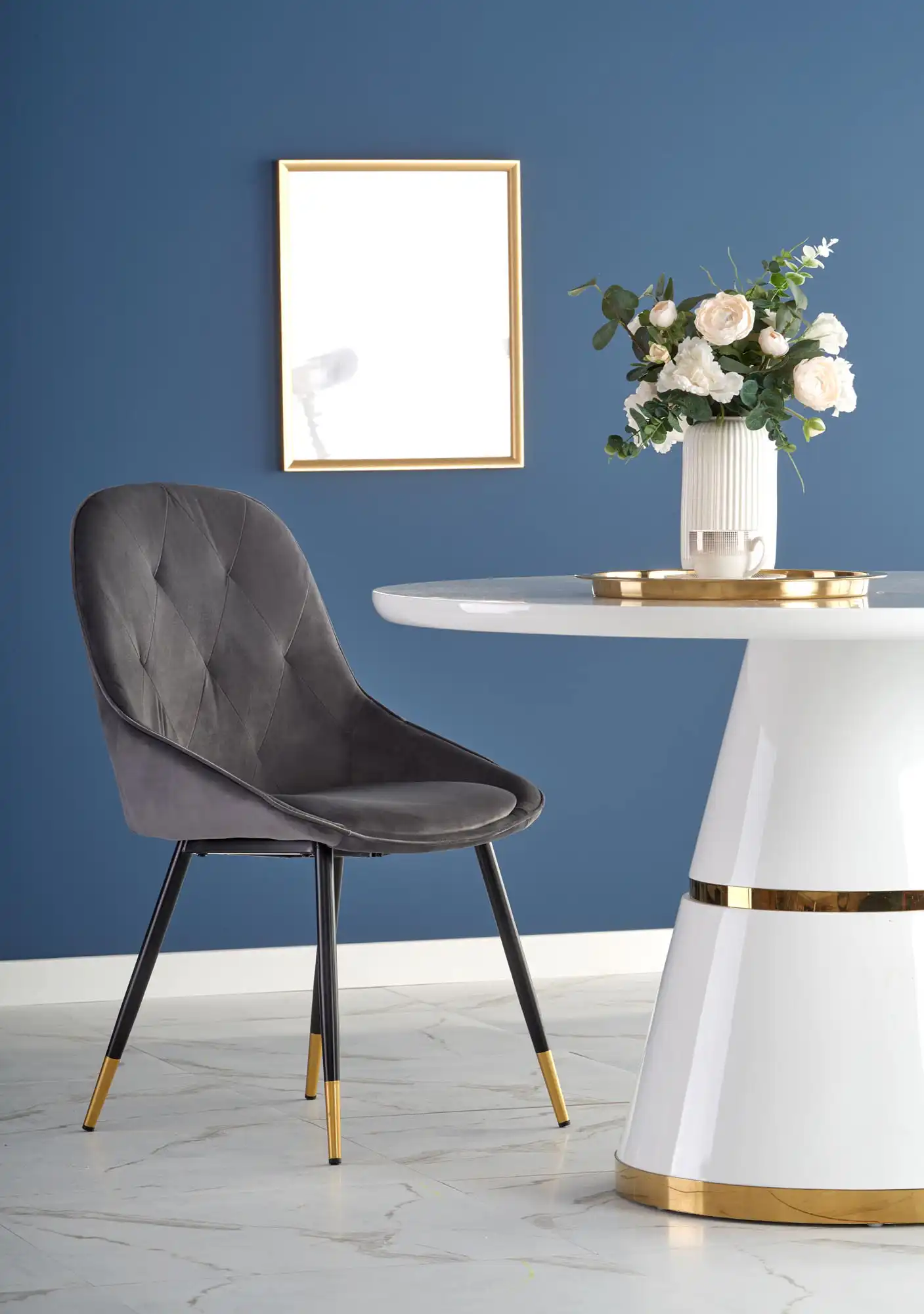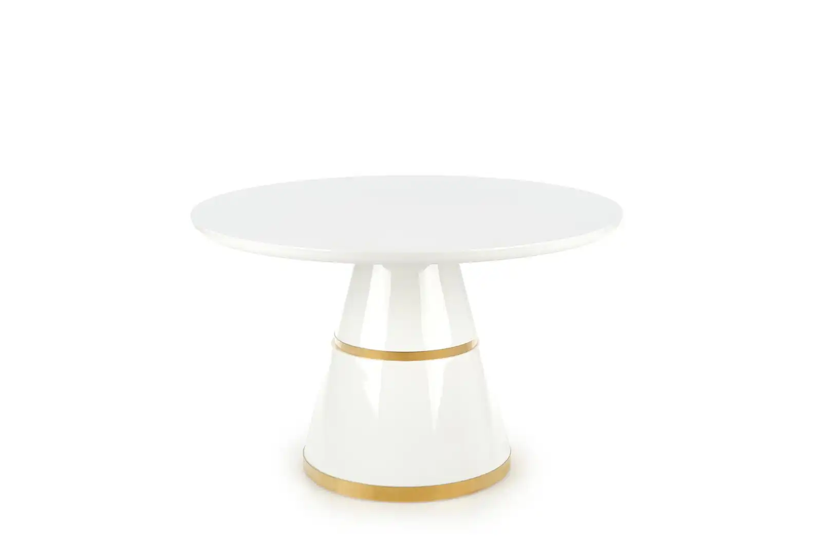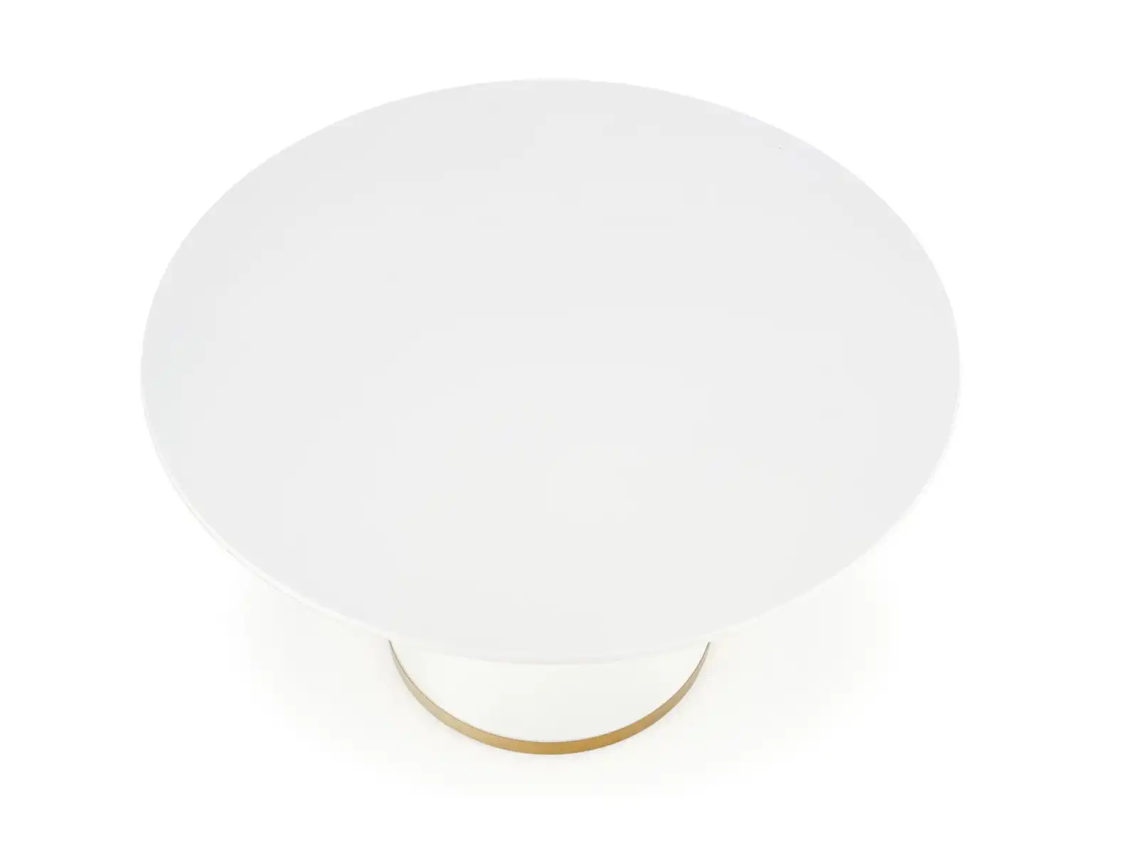 méretek: o120/76, anyag: lakkozott MDF / króm acél, szín: fedlap – fehér, láb – fehér / arany