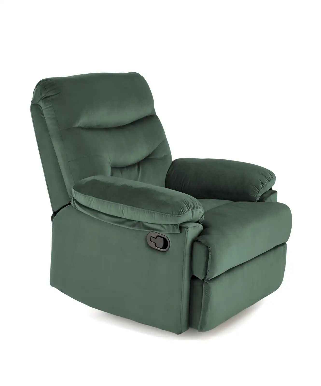 méretek: 88/90-160/105/45 cm; dönthető fotel, anyag: szövet – bársony, szín: s.zöld