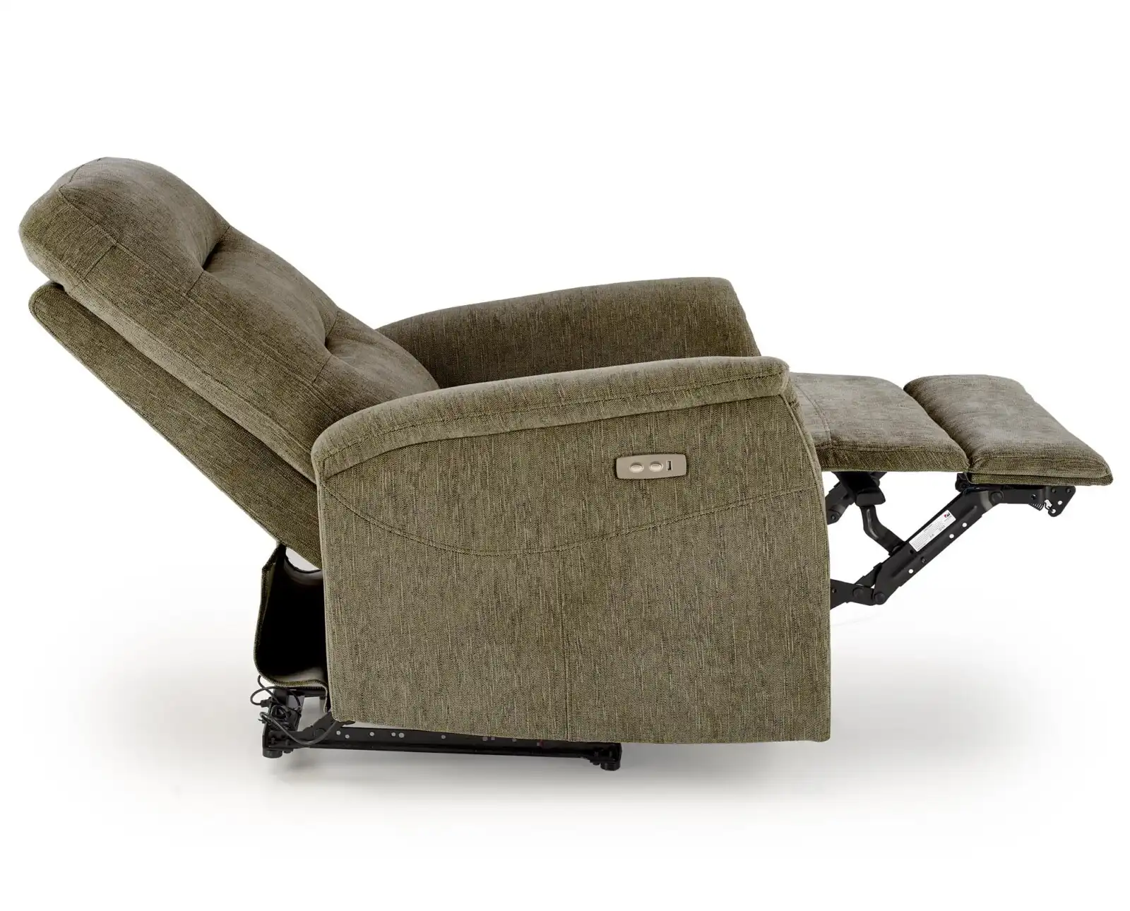 méretek: 80/90-160/105/47 cm; elektromos dönthető fotel / USB csatlakozóval, anyag: szövet – ODIN, szín olíva ODIN#77