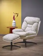 méretek: fotel 78/90/98/46 cm, puff 48/40/44 cm, fotel puffal / hintázó funkcióval, anyag: szövet / műbőr, szín: bézs / többszínű