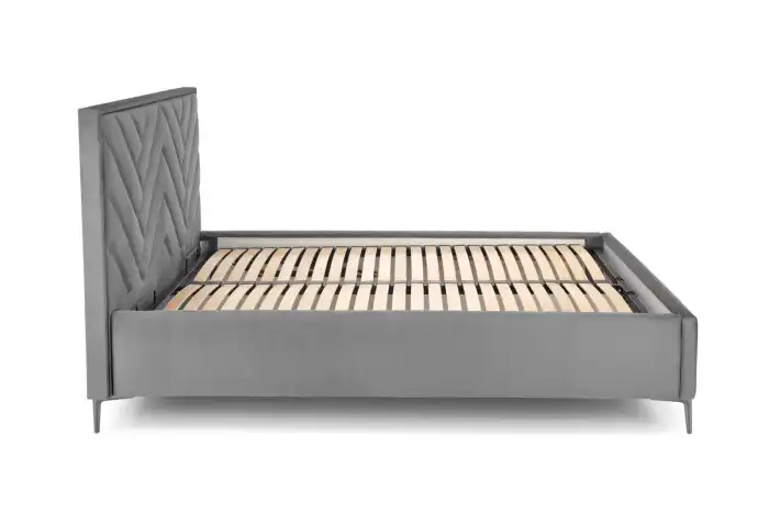 MODULO ágyváz ágyneműtartóval és emelhető ráccsal, méretek: 208/175/44cm, a rácslécek közötti 2,5 cm-es távolság lehetővé teszi minden típusú matrac használatát, anyag: szövet – bársony, szín: szürke (Monolith 85), ágy matrac nélkül, opcionális POLARIS 160 vagy SYRIUSZ 160 matrac. A teljes ágy összeállításához rendeljen ágytestet, fejvéget és ágylábakat.