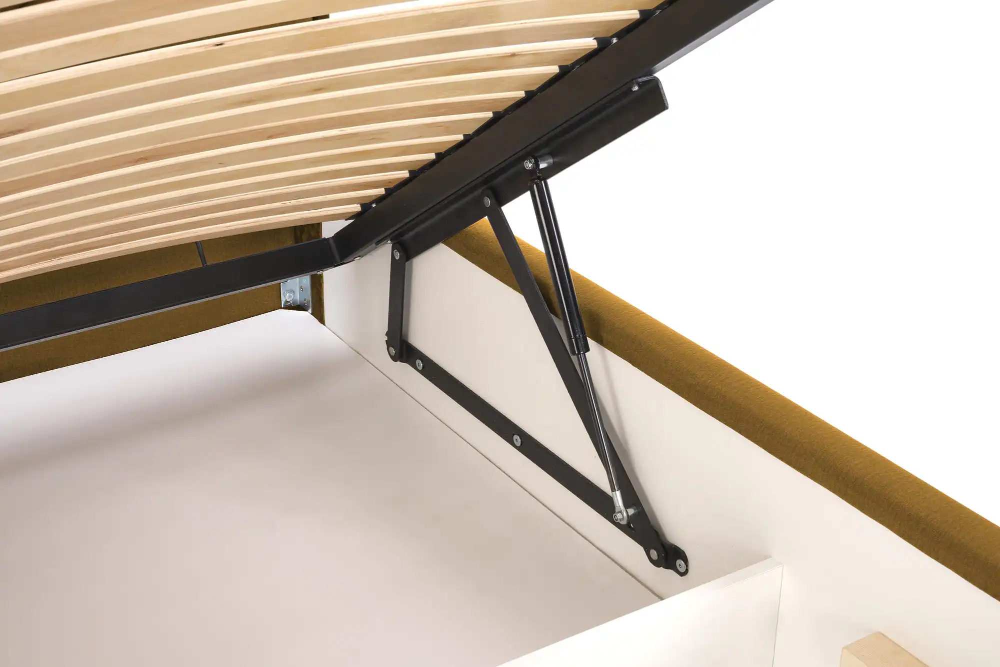 W-1 fejvég a MODULO ágyhoz ágyneműtartóval és emelhető ráccsal, méretek: 175/8/120cm, anyag: szövet – bársony, szín: mustár (Monolith 48), A teljes ágy összeállításához rendeljen ágytestet, fejvéget és ágylábakat.