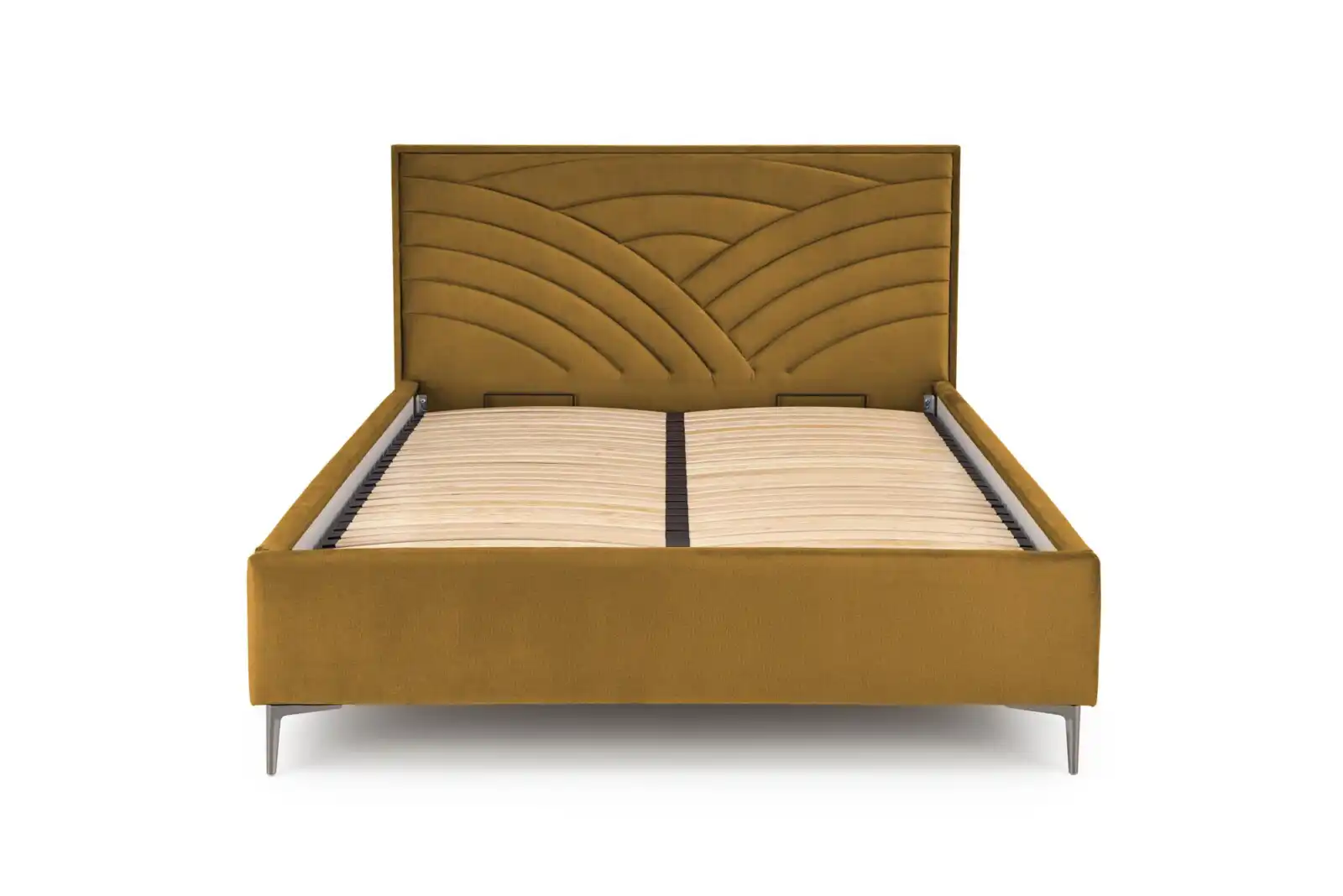 W-3 fejvég a MODULO ágyhoz ágyneműtartóval és emelhető ráccsal, méretek: 175/8/120cm, anyag: szövet – bársony, szín: mustár (Monolith 48), A teljes ágy összeállításához rendeljen ágytestet, fejvéget és ágylábakat.