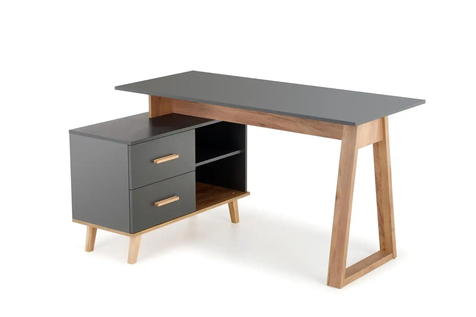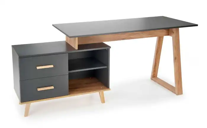 méretek: 134-210/60-90/78 cm, egyenes vagy sarok íróasztal, anyag: laminált faforgácslap / laminált MDF / tömör fa, szín: matt antracit – wotan tölgy