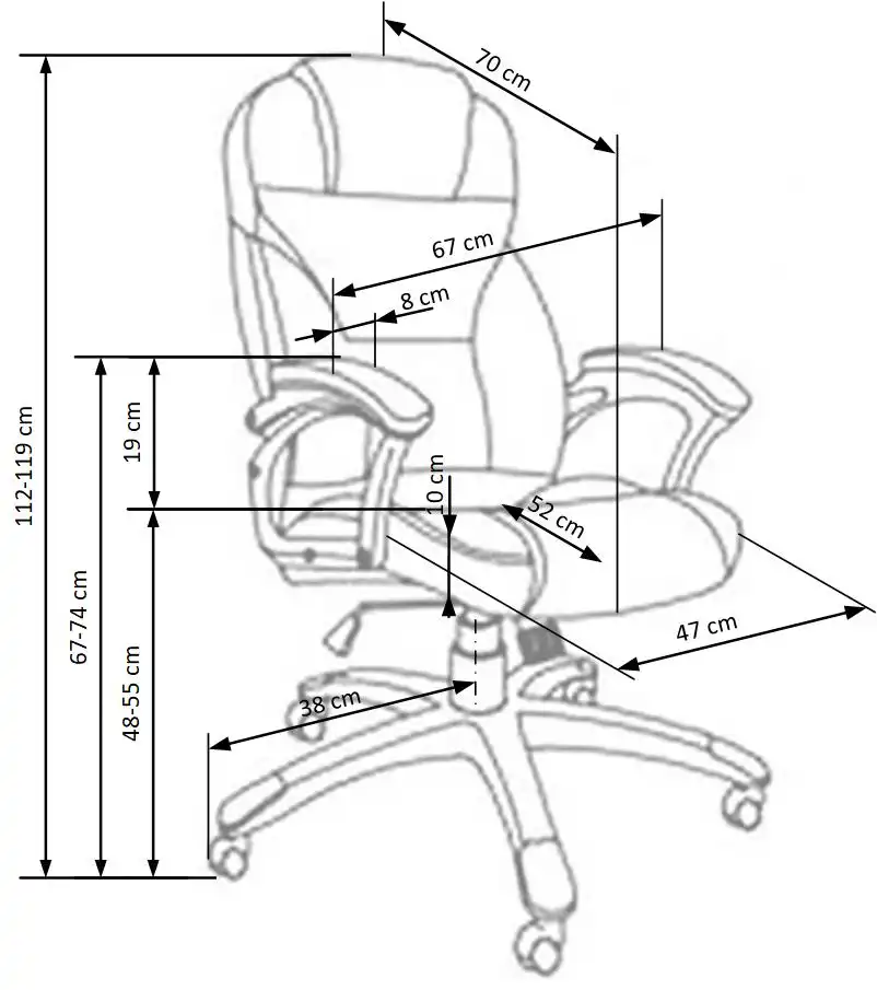 multiblock mechanizmus, gumírozott kerekek, méretek: 67/70/112÷119 cm, anyag: műbőr, szín: szürke