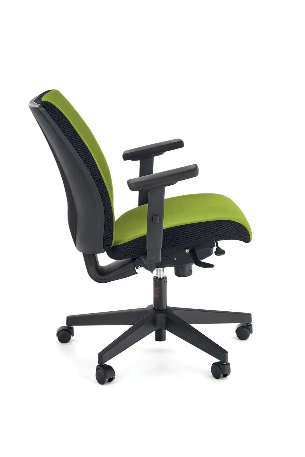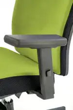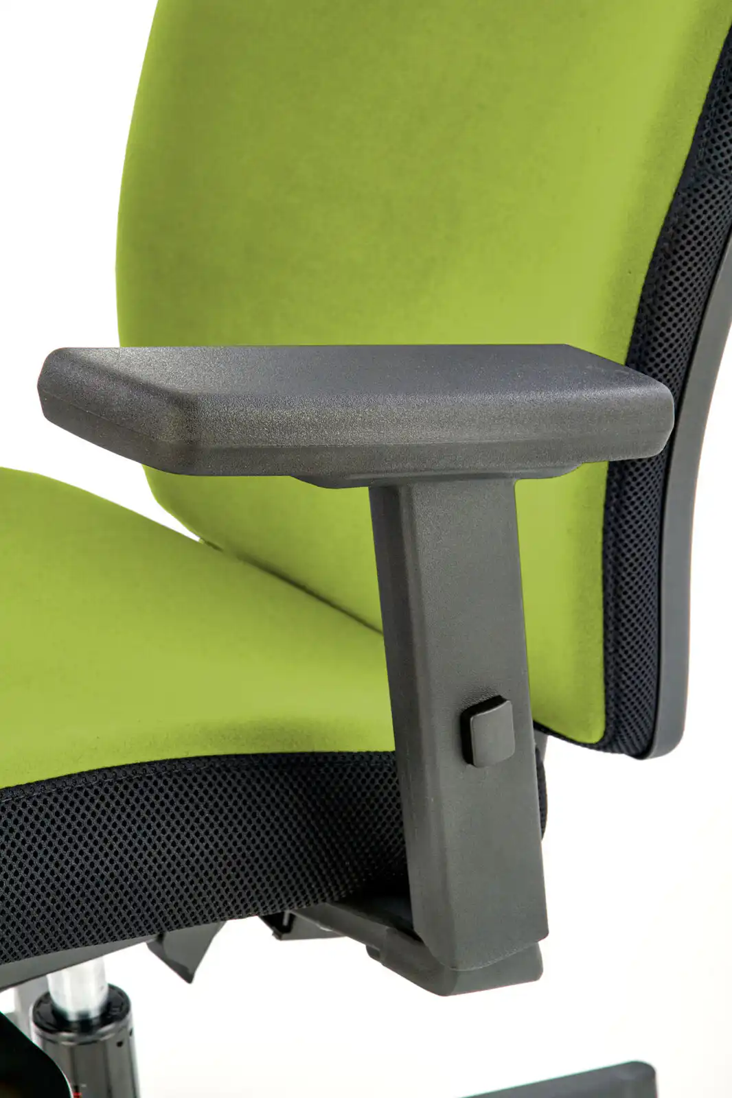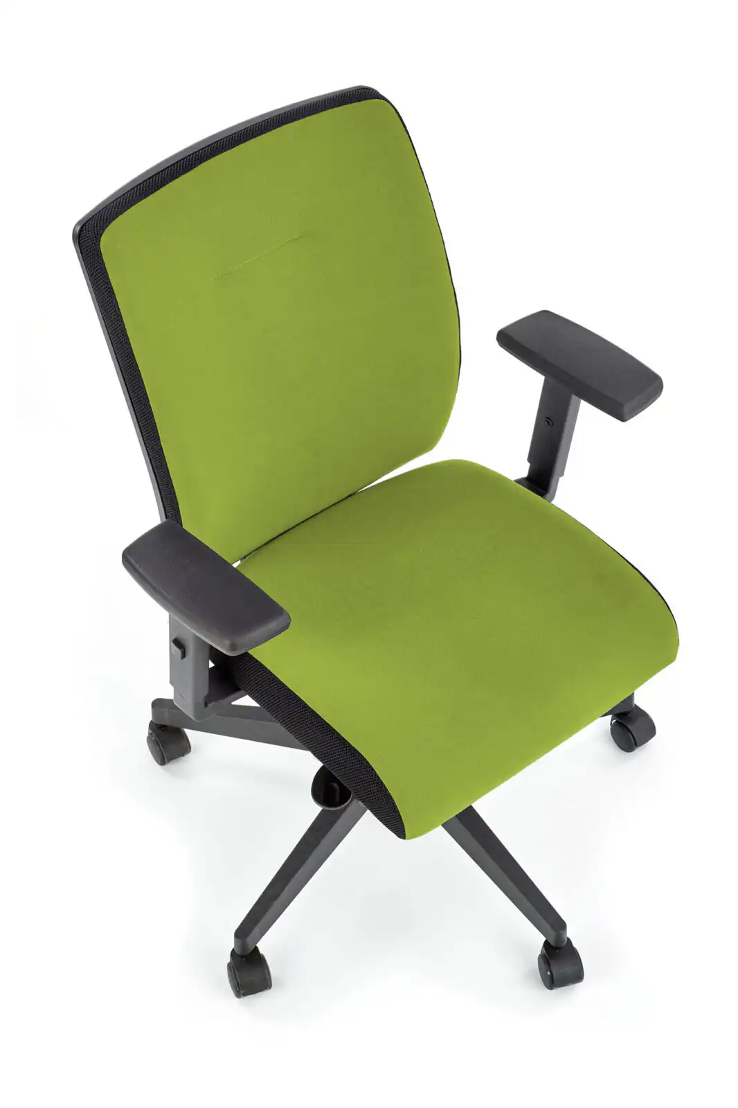 szinkron mechanizmus, csúsztatható ülés, állítható kartámasz két pozícióban, méretek: 93-108/68/65/48-63 cm, anyag: szövet, szín: fekete / zöld