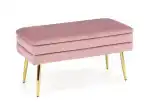 méretek: 78/42/37 cm, tárolási funkcióval ellátott pad, anyag: bársony szövet / króm acél vagy porszórt acél, szín: rózsaszín / arany