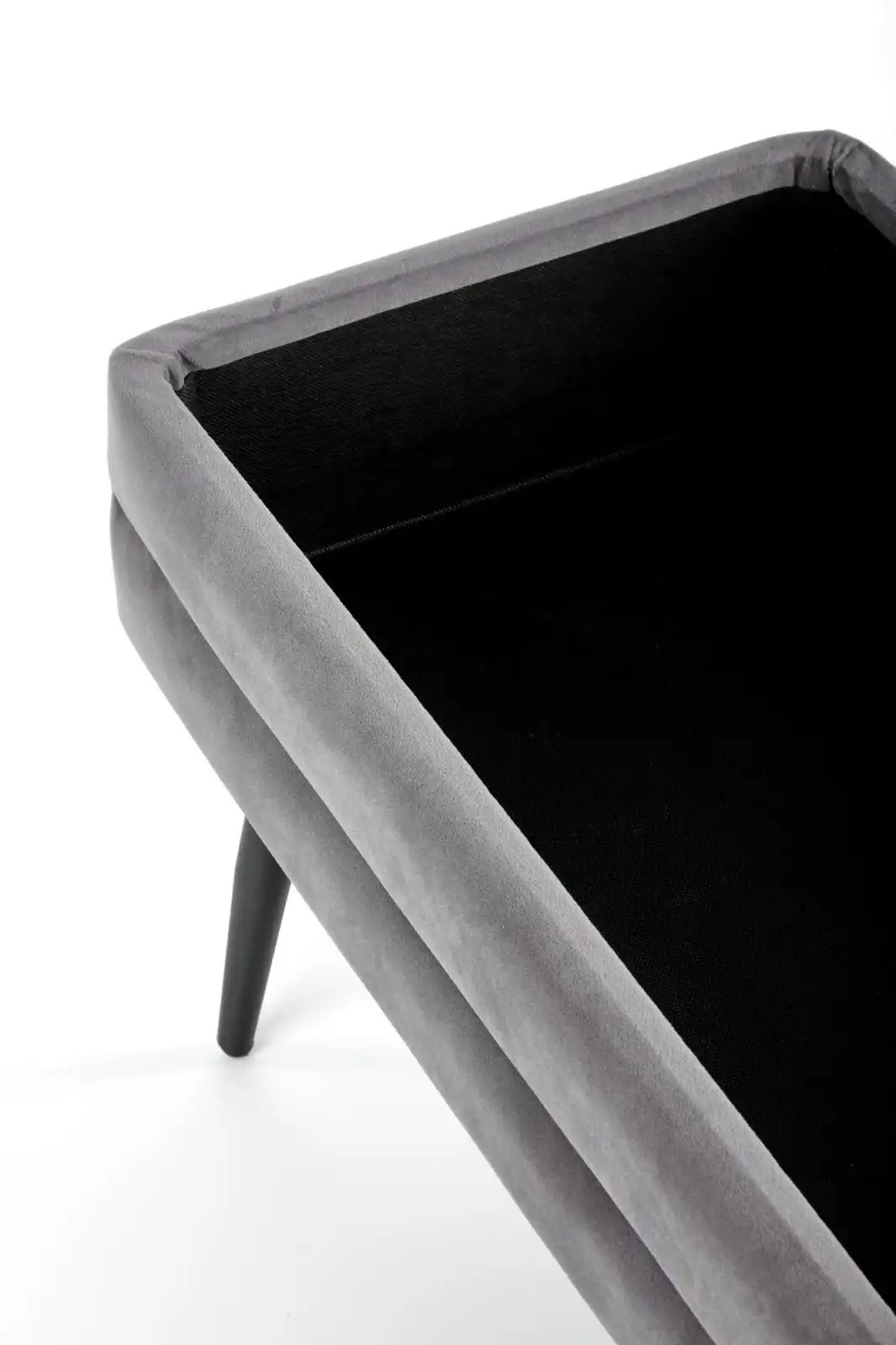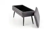 méretek: 78/42/37 cm, tárolási funkcióval ellátott pad, anyag: bársony szövet / króm acél vagy porszórt acél, szín: szürke / fekete