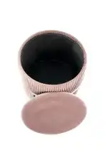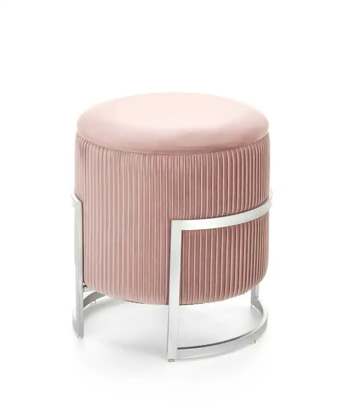 méretek: fi40/46 cm, puff tárolófunkcióval, anyag: bársony szövet / porfestett acél, szín: világos rózsaszín