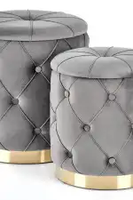 méretek: 40/44 és 33/38 cm, két darabos szett, anyag: szövet / króm acél, szín: szürke / arany