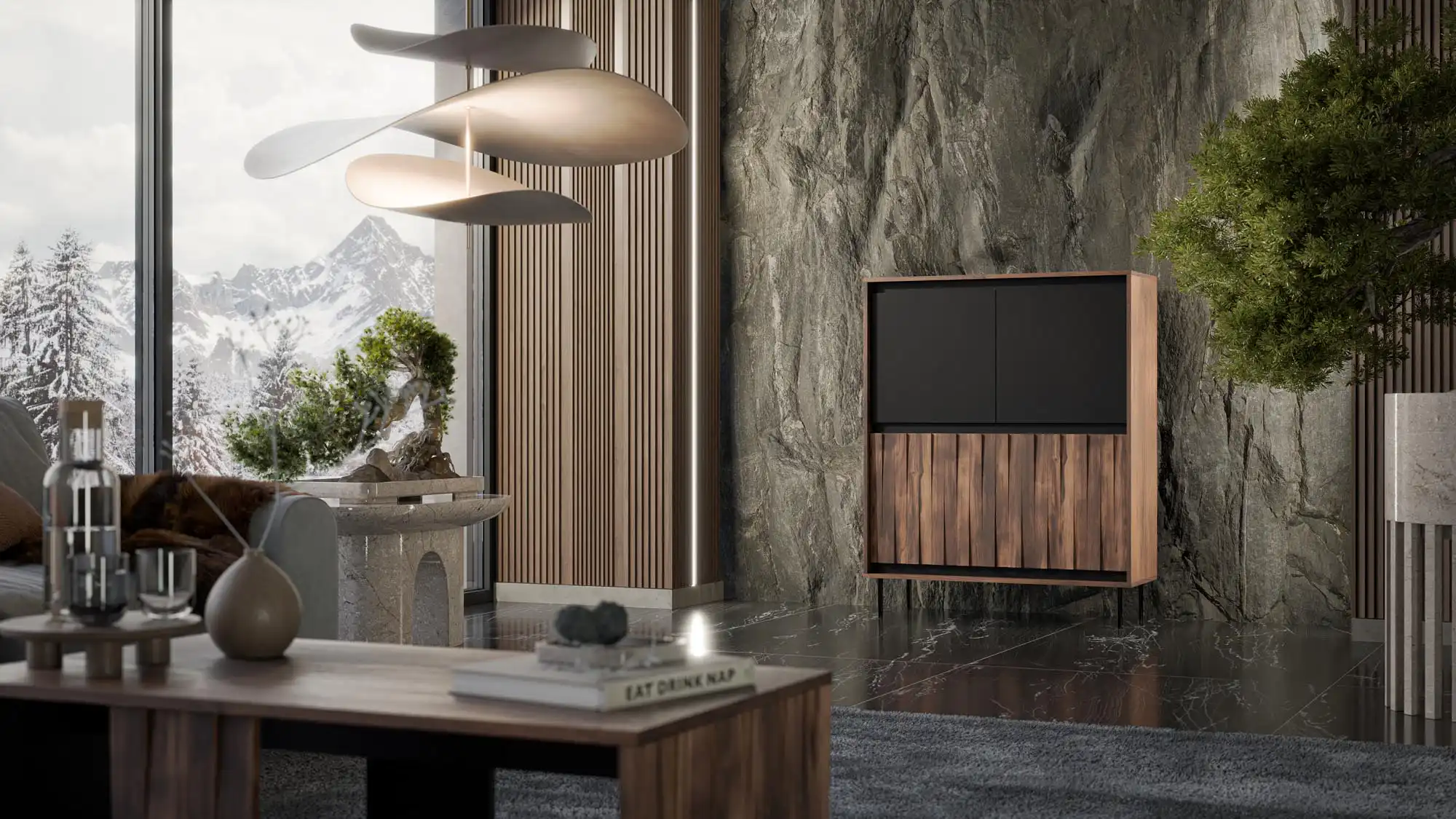 SWING KM-2 komód, szín: dió/fekete