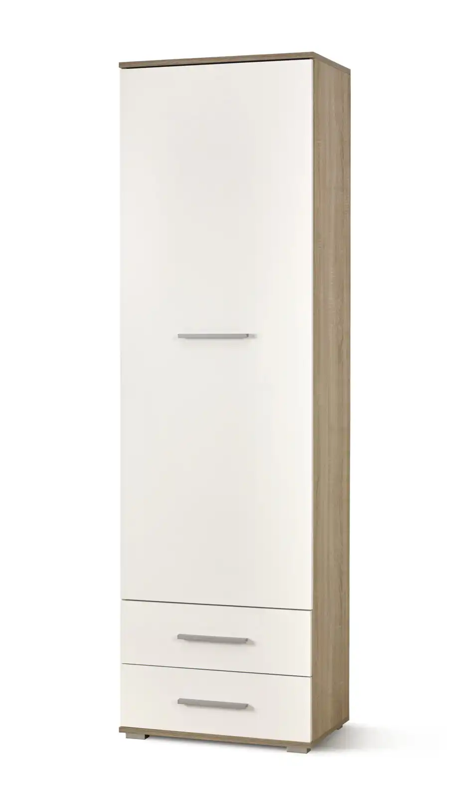 méretek: 60/40/200 cm, anyag: laminált faforgácslap / magasfényű, ABS élek, szín: sonoma tölgy-fehér