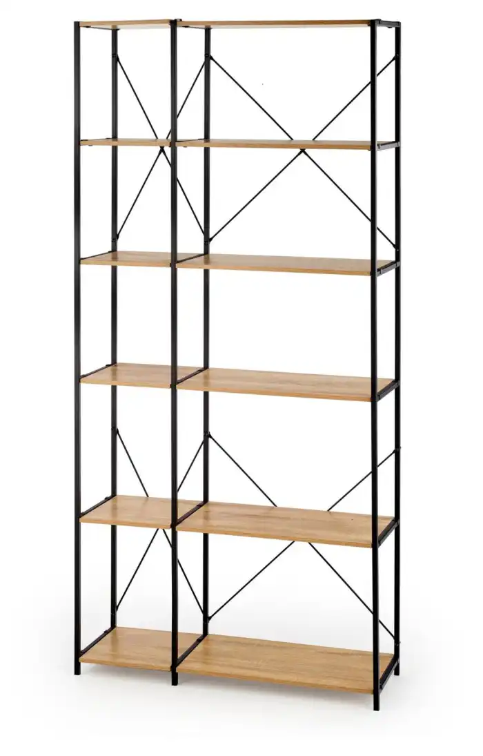 méretek: 90/30/190 cm, anyag: laminált forgácslap / porfestett acél, szín: sonoma tölgy / fekete