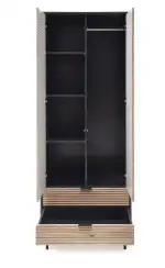 szekrény, méretek: 80/53/205 cm, anyag: laminált MDF / laminált faforgácslap / porfestett acél, szín: artisan tölgy / fekete