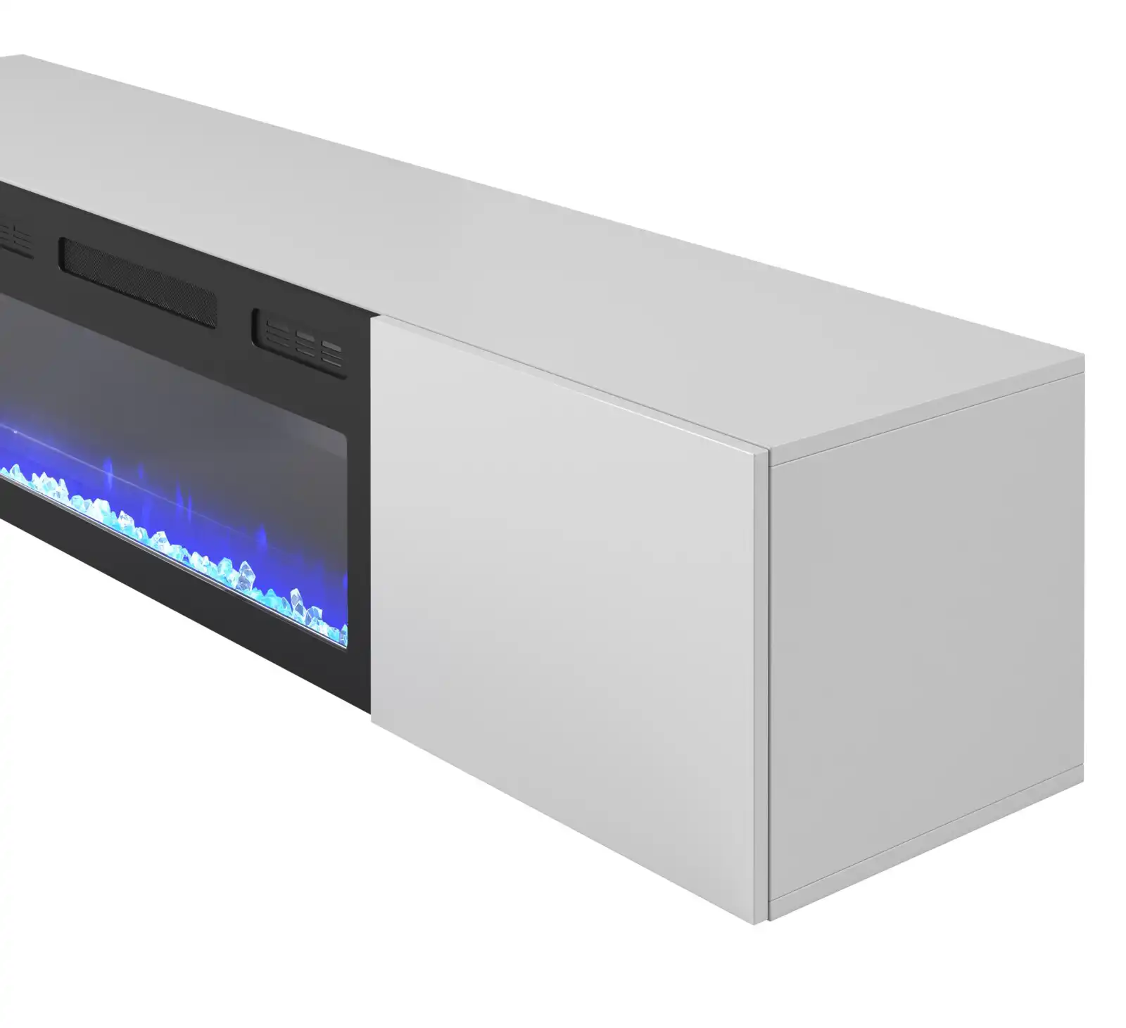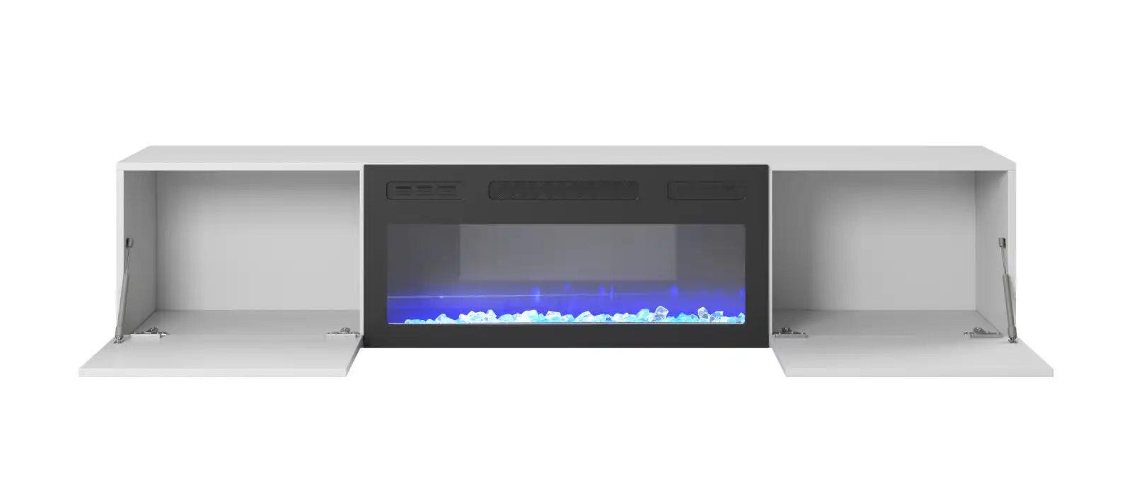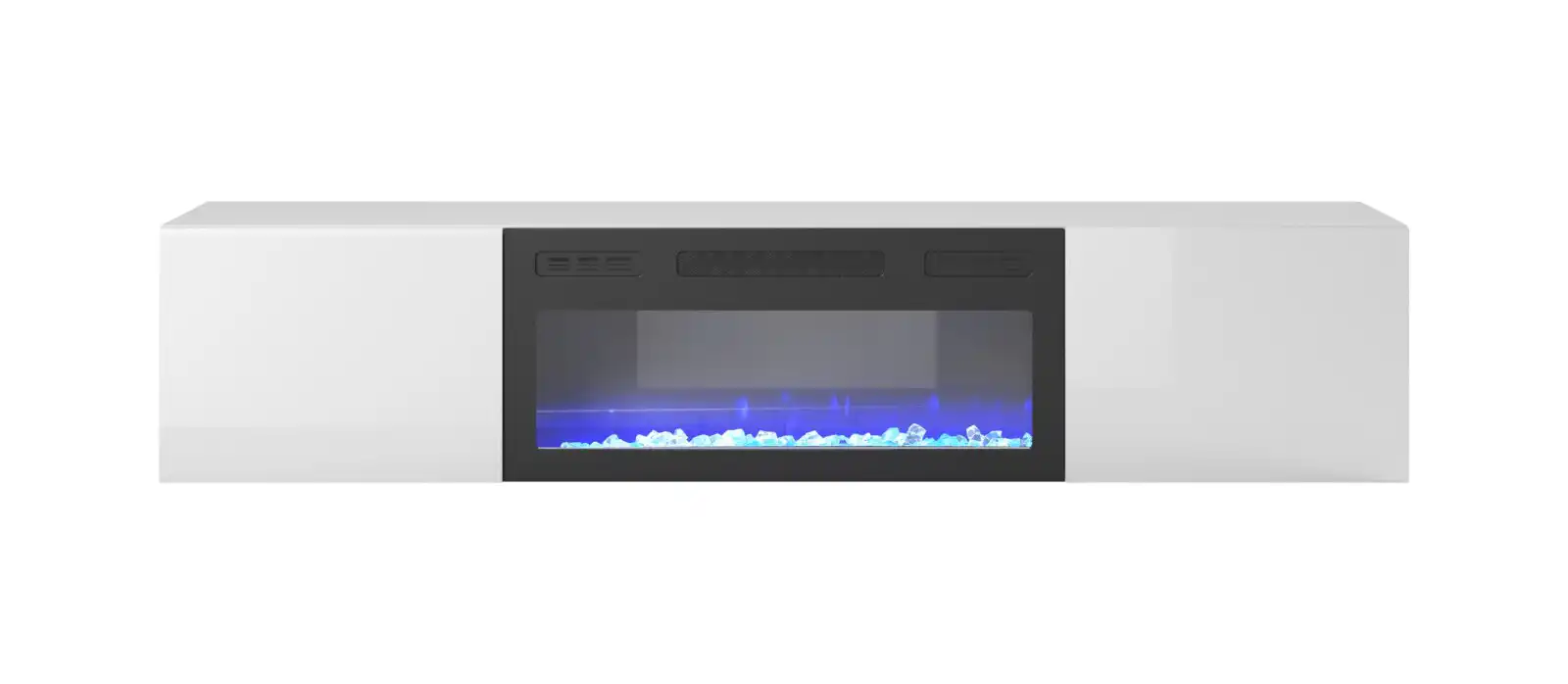LIVO RTV-180W-K függő TV szekrény, beépített kandallóval, szín: fehér