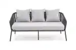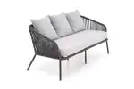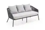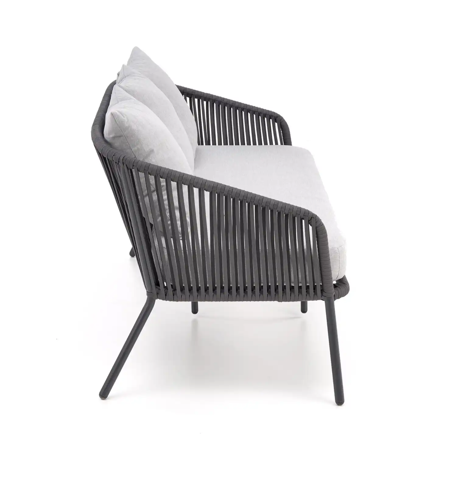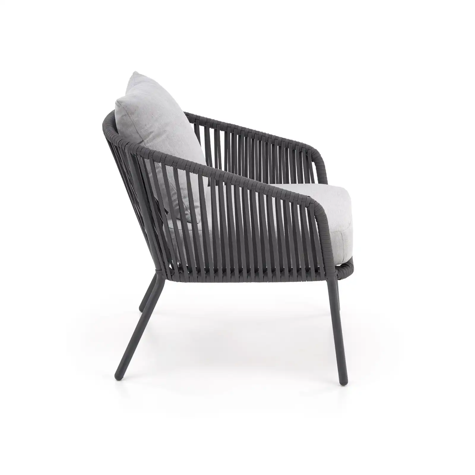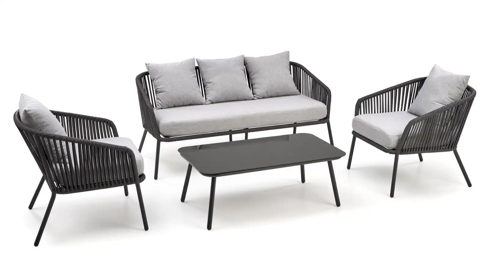 kerti szett (kanapé + fotel 2x + dohányzóasztal), anyag: porfestett alumínium / üveg / kötél / szövet, szín: sötétszürke / világosszürke